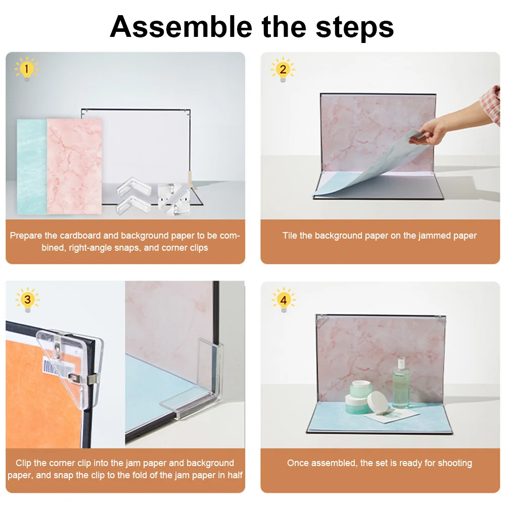 - Compact, studio-ready size: a 42x29 cm backdrop board and 41.5x28.5 cm background papers give you a clean, wrinkle-free surface to capture authentic color and texture on your products.